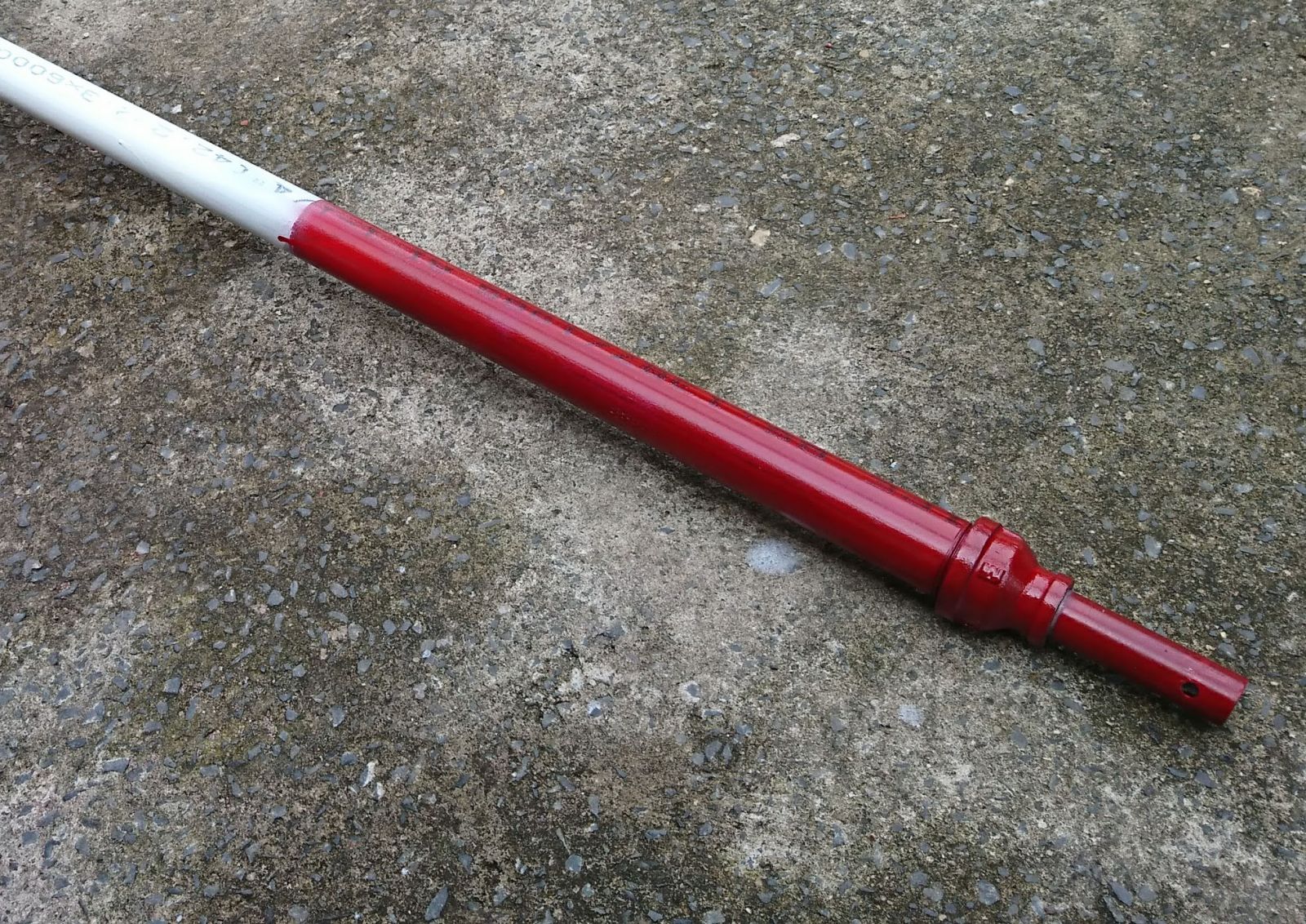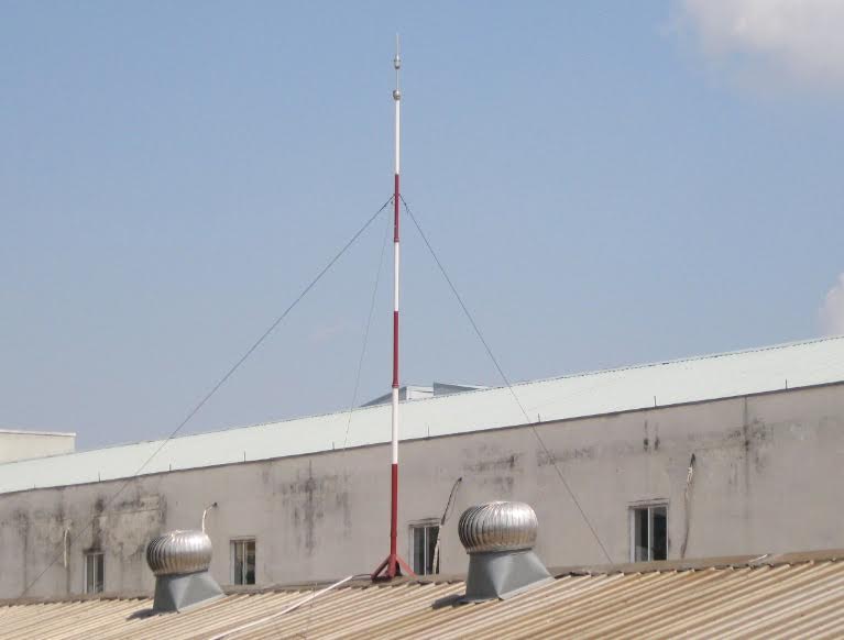 Hai đoạn dưới ống sắt phi 42mm,đoạn thứ 3 phi 34mm là đoạn trên cùng để gắn với kim thu sét.