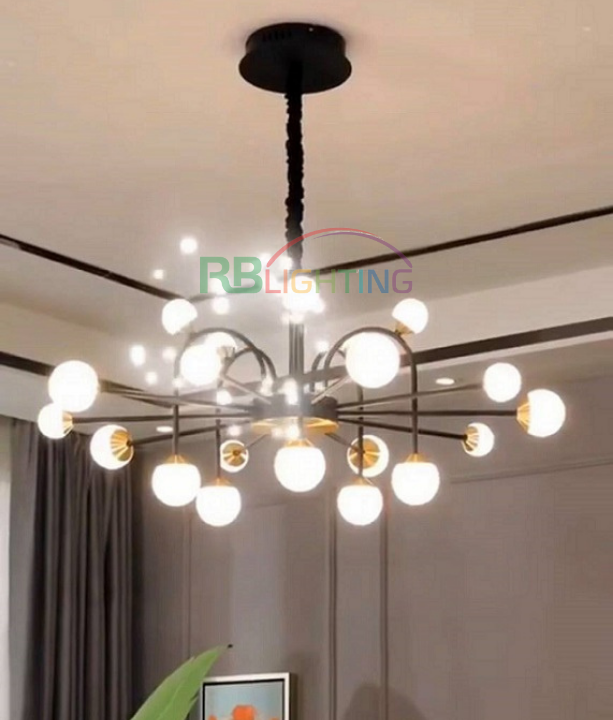 Đèn chùm thủy tinh được thiết kế với phong cách sang trọng, vừa giữ được dáng vẻ tinh tế, hiện đại. Đây là mẫu đèn chùm cho phòng khách được ưa chuộng nhất hiện nay. Ngoài ra, bạn cũng có thể ứng dụng chiếc đèn tuyệt vời này cho các căn phòng khác nữa như phòng ngủ, phòng ăn…