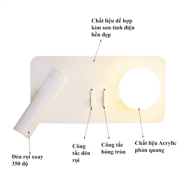 - Kèm công tắc bật/tắt trực tiếp trên đèn, vô cùng tiện lợi, có thể tắt/mở đèn ngay tại chiếc giường của bạn