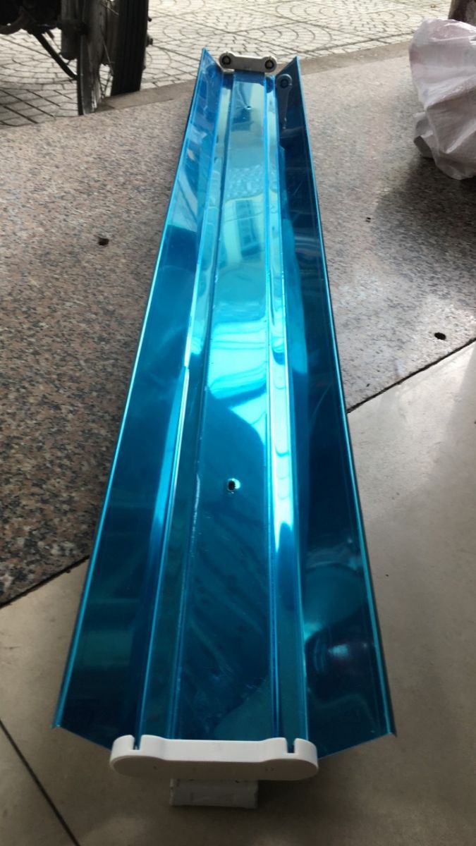 Máng đèn công nghiệp chóa inox phản quang 1m2 dùng cho 2 bóng - với góc mở hợp lý, tập trung ánh sáng lên mặt phẳng làm việc.